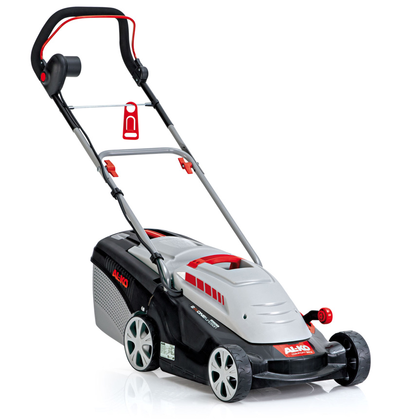 AL-KO 34 E Electric Lawnmower Comfort The electric lawn mower is your perfect mower for lawn care in many residential areas thanks to emission-free and quiet operation. The AL-KO electric mowers are available in power classes up to 1,400 W and operate without exhaust fumes, engine oil, heat generation and noise. The cable operation allows uninterrupted working without regard to charging times or refueling - and without extra weight by battery or fuel tank.
