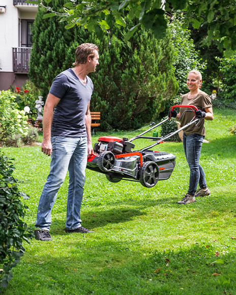 Usually, garages, garden sheds or basements are too small. This is why Highline mowers can also be stored away vertically to save space. The integrated upstanding function makes it possible.