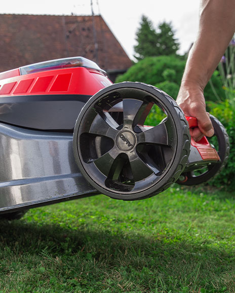 The powerful spring support allows the cutting height to be set quickly and conveniently with a hand grip.