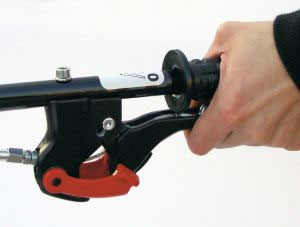 The locked safety hand lever prevents inadvertent turning of the tiller blades.