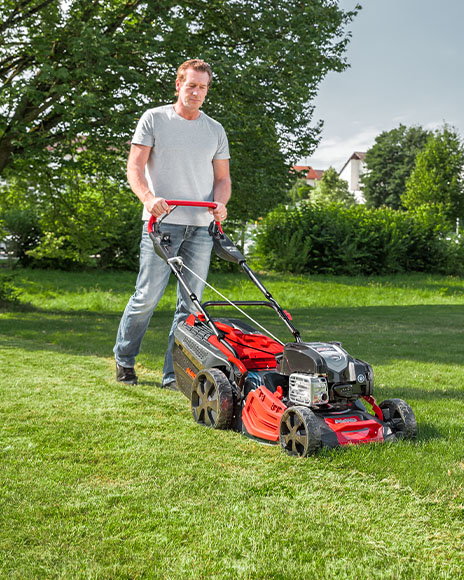 Wtih variable speed control from 2.5 to 4.5 km / h and the XXL lightweight wheels guarantee easy progress in the garden. The 4 IN ONE function provides the mowing, catching, side discharge and mulching capabilities.