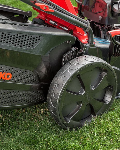 Thanks to the wheel drive and the XXL lightweight wheels, it's easy to move the mower around the garden. The 4INONEfunction offers mowing, collecting, mulching and side discharge of the grass.