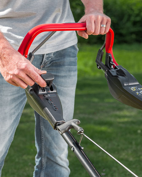 Easily reached controls, the ergonomic soft grip and, thanks to VarioSpeed, infinitely variable wheel drive make mowing the lawn a pleasure. The handlebar can be optimally adapted to suit the operator by adjusting the handlebar height to one of several positions (only with VS models).