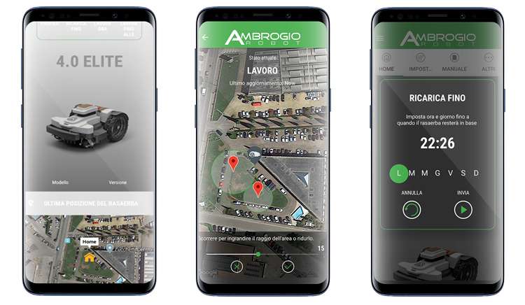 Ambrogio 4.0 Elite Premium Robotic Lawnmower The 4.0 Elite model combines the characteristics of flexibility and modularity with 4.0 technological innovation. It is mounted on board the ZCS Connect device that, together with the GPS, Bluetooth and GSM technology, enables the connection of the robot anytime and anywhere, in total safety. Its possible to stop, start & exclude areas to be cut and monitor the robot with a simple touch of a button.