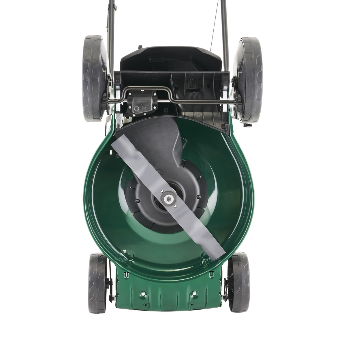 A skid plate is fitted at the front of the cutter deck - this ensures the best possible finish to the lawn and minimises the risk of scalping on uneven surfaces. And with handlebars that fold down it is easy to store after use in your shed or garage. Suitable for larger gardens.