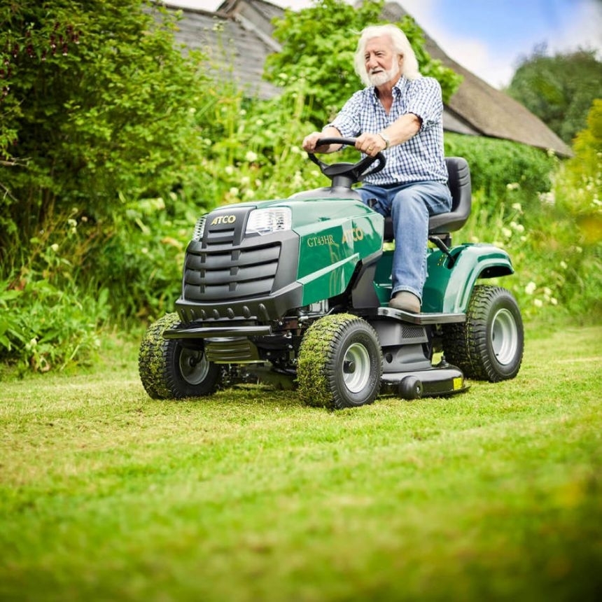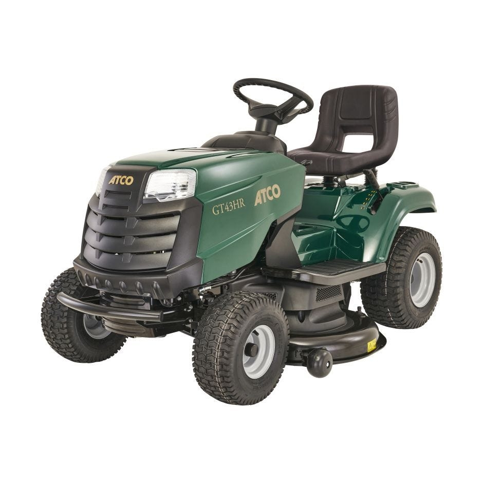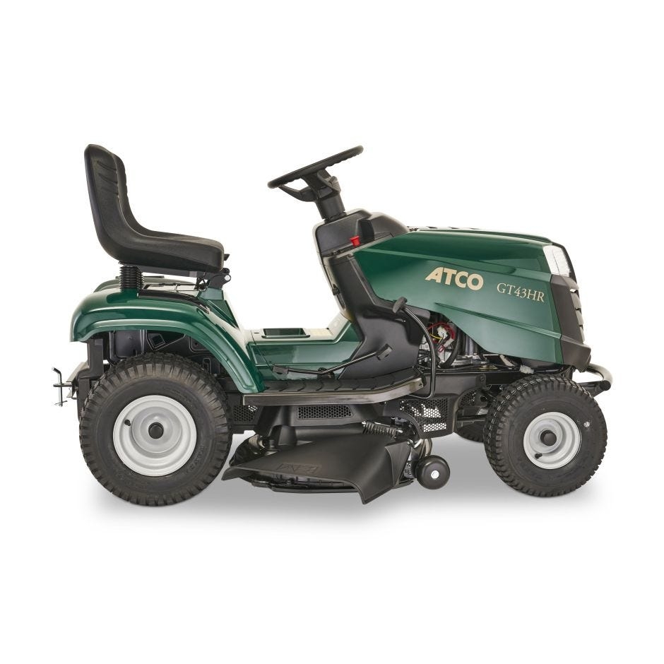 Atco GT43HR Lawn Tractor Ride on Mower The integrated technology of the overhead valve engine reduces fuel consumption and expenditure, creating more environmentally-sympathetic emissions with a sizeable 6-litre fuel tank capacity to lower fuel refills. Meanwhile, the tractors dual crankshaft design, electromagnetic blade engagement, ergonomic steering, and pedal-controlled hydrostatic transmission enable a smoother, more controllable driving experience.