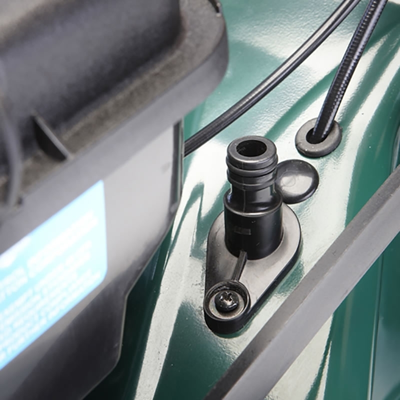 Keeping your mower clean has never been simpler. Just attach your hosepipe to the washing link, spin the blade, and let the water do the work. No more debris build-up under the durable aluminium and galvanised steel deck!