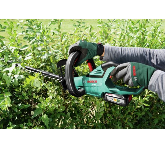 Bosch AHS 55-20 LI Cordless hedgecutter The hedgecutter AHS 55-20 LI provides cordless mobility with maximum power. The combination of 550 mm blade length, 20 mm tooth opening and the electronic Anti-Blocking System for continuous cutting ensures youve got the right garden tool to get the job done. Thanks to the intelligent Bosch Syneon Chip the battery delivers more runtime so that even complex projects are easy to handle. The innovative Quick-Cut Technology ensures that twigs and branches are cut first time round enabling a quick and efficient hedge cutting.