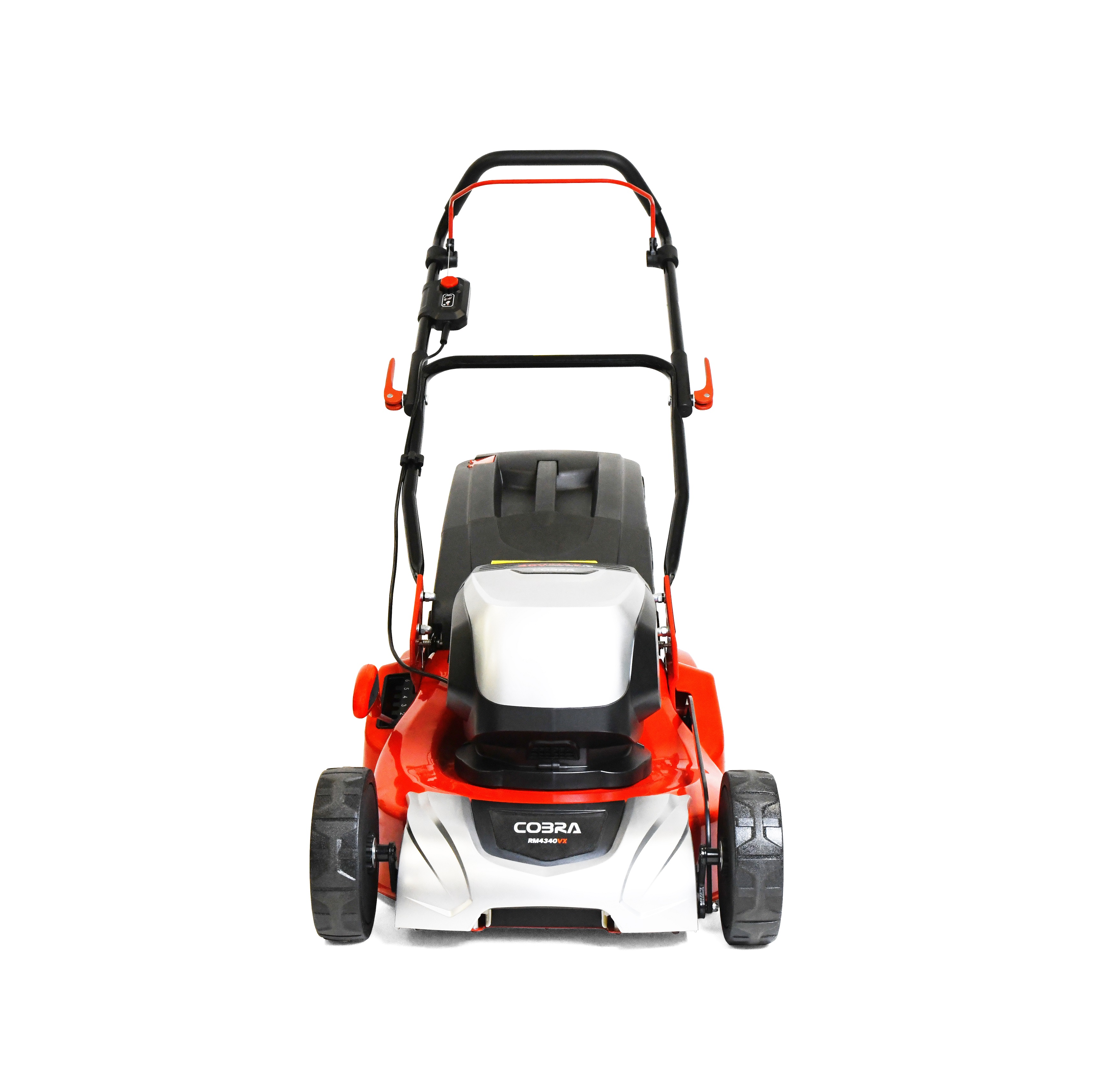 Cobra RM4340VX Lawnmower 43cm Li-Ion Cordless Rear Roller - With exceptional performance and style, the Cobra RM4340VX cordless Lithium-ion lawnmower with striping roller allows you to get more done without the need for petrol or electrical cables. The RM4340VX is a hand propelled model with a rear roller for that classic striped finish. With a fully adjustable 6 cutting heights ranging from 17mm for a superb low finish, up to 75mm for tackling longer grass. All this is achieved by simply using the single height of cut adjustment lever which has been conveniently positioned next to the rear roller