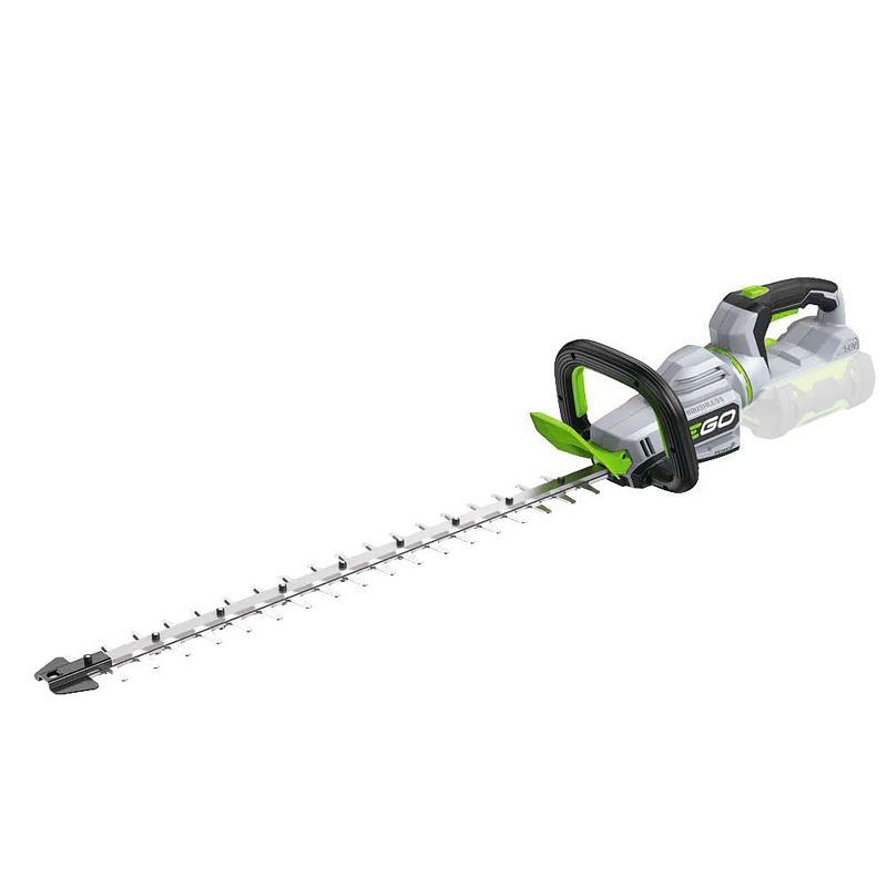 EGO Cordless Hedgetrimmer Lithium -Ion 56V HT2601E Engineered to deliver impressive cutting ability from a single charge, the EGO Power+ Hedge Trimmers well-balanced design and clever features makes working outdoors easier and more comfortable. The rotating handle and dual trigger system provide enhanced user comfort and safety. While the smooth and quiet brushless motor and gearbox gives you all the power you need, without the vibration, emissions and noise of a petrol engine. EGO hedge trimmer blades are diamond ground and double sided for clean, precise cutting. All blades have large cutting capacities for tackling thicker hedges and are available in 51cm to 66cm lengths, to suit every size of hedge. Blade-tip protection stops damage from fences and walls. For safer working, the safety blade guard helps prevent injuries while the electric brake stops the blades when the trigger is released.