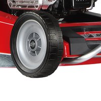 The quality of the Efco MR 55 TBI lawn mower remains undiminished over time thanks to the aluminium deck which is protected at the front and sides by strong, amply proportioned metal guards. The large diameter aluminium wheels guarantee smooth progress on any type of terrain.