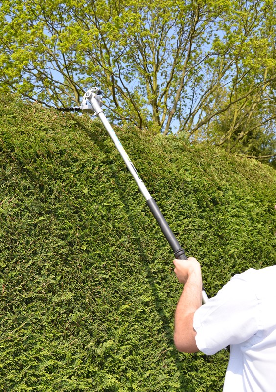 With its 55cm bar length and a reach of around 2.3 metres, this articulating (90°) long-reach hedge cutter attachment facilitates the safe trimming of high hedges, without the need for a ladder.