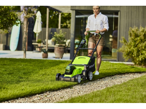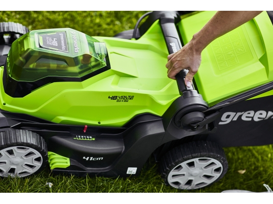 Greenworks 48V 41cm G24X2LM41K2X Lawnmower with 2 x 24V Batteries and Charger This greenworks 48V 41cm Cordless Mower with 2 x 24v 2Ah Batteries ( 48 V Running Power ) and Charger. Greenworks mowers combine Lithium-ion battery technology with high-efficiency motors to create cordless mowers with petrol-like performance.
