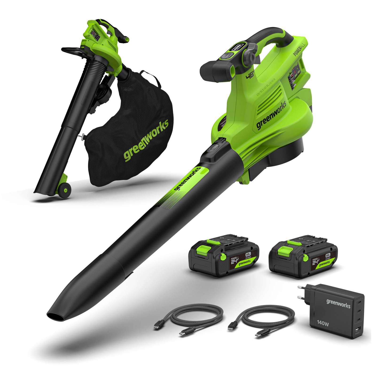 Greenworks BL48L421-01 48V Li-Ion Cordless Blower Vacuum + 2 Batteries + Charger The Greenworks BL48L421-01 48V Li-Ion Cordless Blower Vacuum delivers high-performance garden clearing with the convenience of cordless power. Designed for efficient removal of leaves, debris, and garden waste, this versatile tool combines strong airflow, variable speed control, and a brushless motor for reliable, low-maintenance operation.