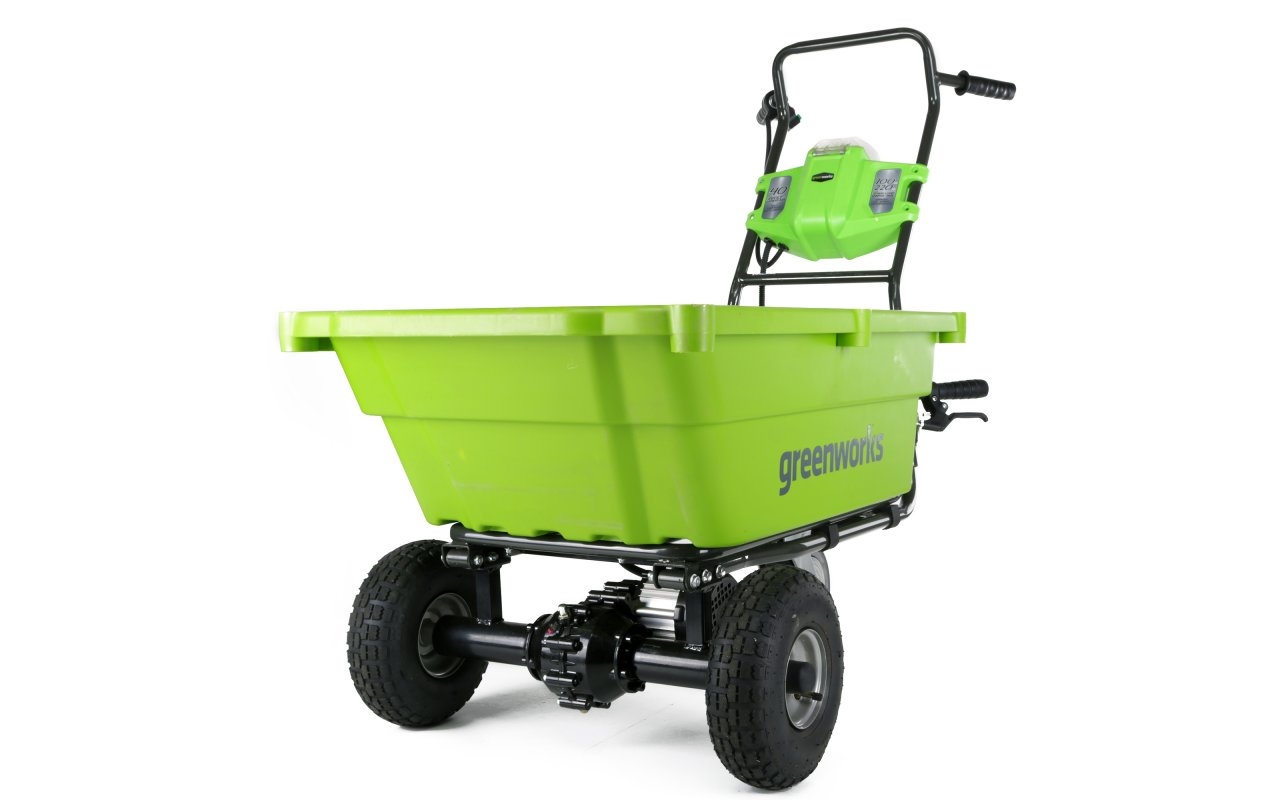 The Greenworks G40GCK2X 40v Garden Cart is a excellent product that has a 100kg capacity which is battery operated and can be extremely useful for moving garden waste and DIY waste around the garden.
