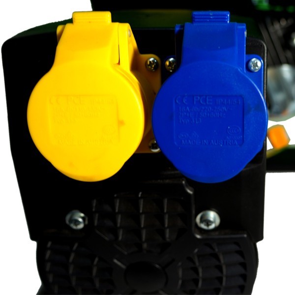 The control box is an alternator mounted control panel, with overload protected sockets and changeover switch.