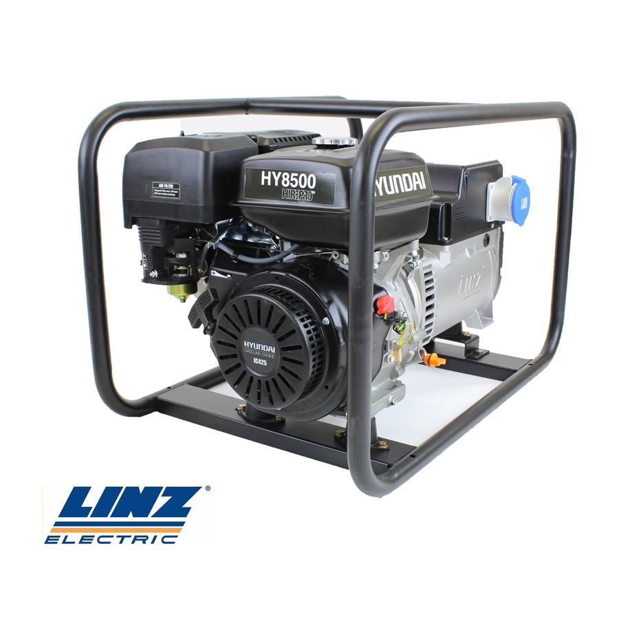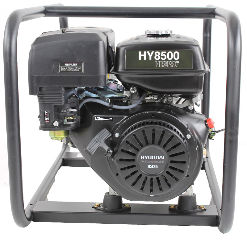 Hyundai HY8500 Hire Pro Petrol Generator 7Kw. This new model from Hyundai is a powerful open frame generator that is designed for commercial, home diy or leisure use and is powered by an efficient and economical 420cc / 15hp single-cylinder Hyundai 4-Stroke engine.