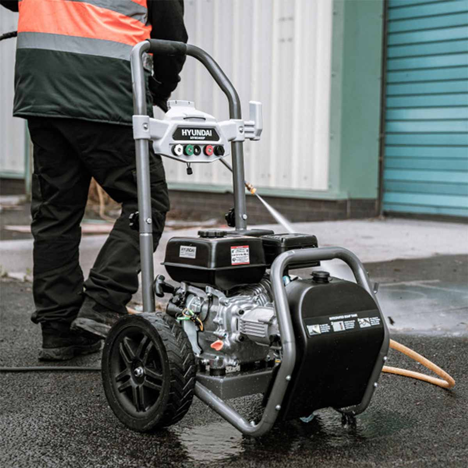 Our petrol pressure washer is powered by a 209cc 4-stroke Hyundai Euro V engine and delivers a high flow rate of 9L/min through its high-performance axial pump - perfect for cleaning driveways, patios and decking, as well as for washing cars.