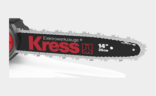 Kress 60V Max 35cm Chainsaw KG367E.9 You want to avoid noise and smell when sawing but dont want to compromise on performance, safety and operating comfort? The new 60V max chainsaw with its brushless 60V motor opera- tes at a high chain speed for a precise, safe cut.