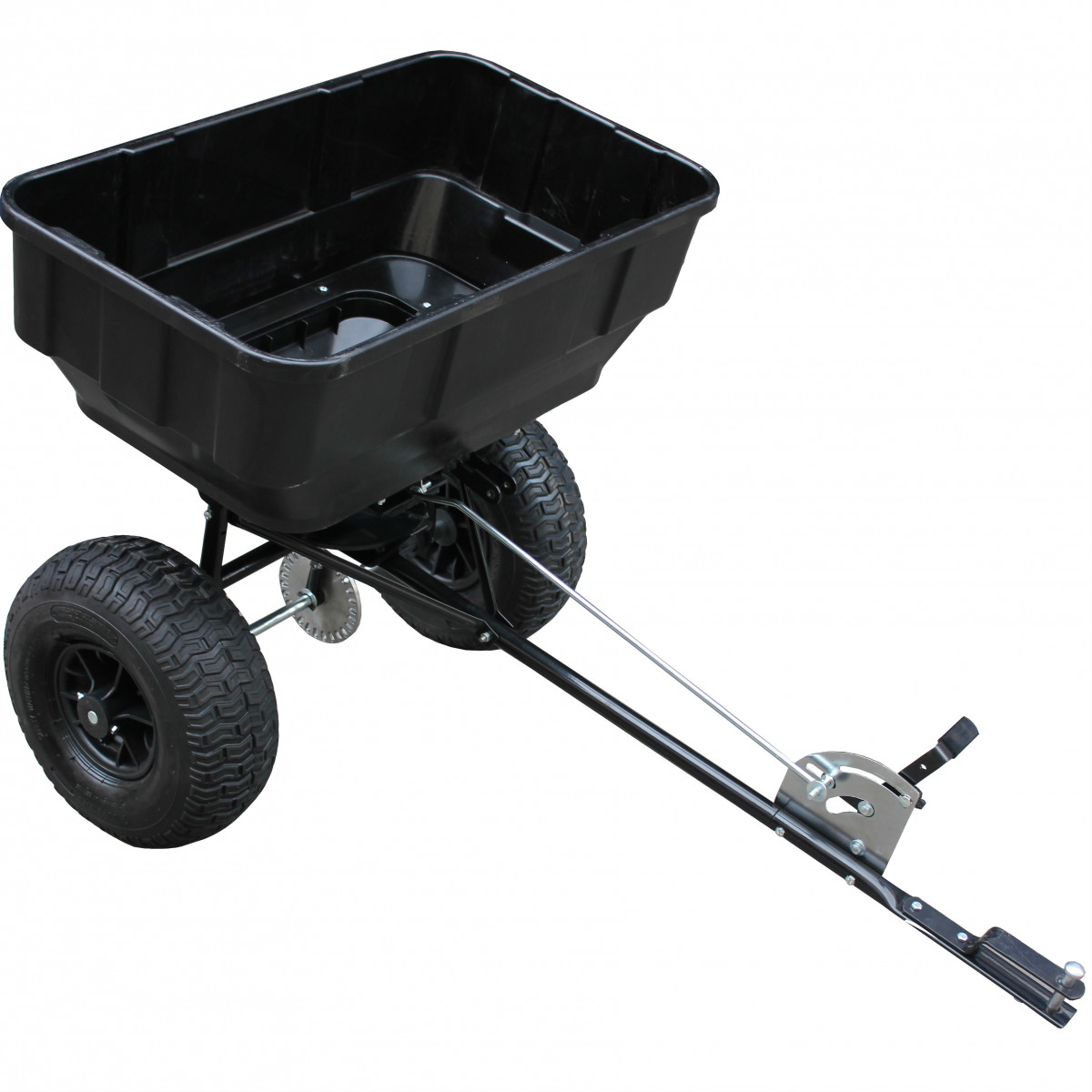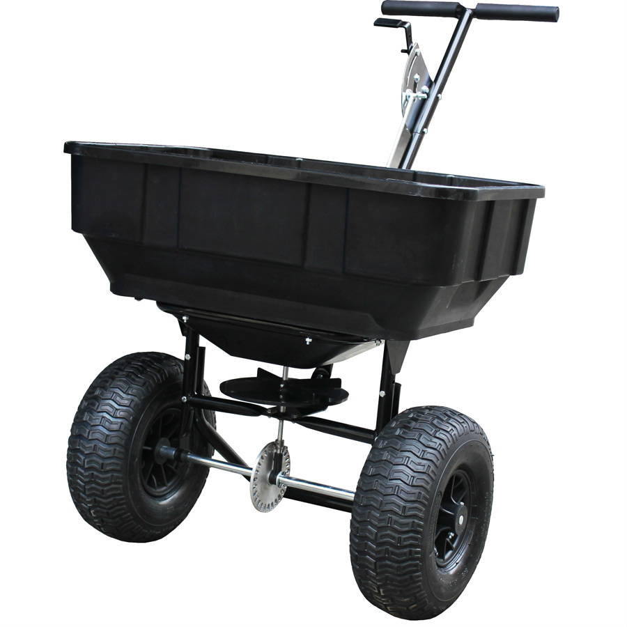 Lawnflite LPTS125 Push/Tow Combi Spreader This tow behind or hand push broadcast spreader is heavy duty and has a rust resistant poly hopper, which means it can be used for spreading most types of materials. The hopper has a capacity of 56kg and a working width of up to 3.37m, which makes it possible to cover up to one hopper's worth of dry granular material. Ideal fo seed, fertilizer, ice melt, rock salt ( dry ) etc.