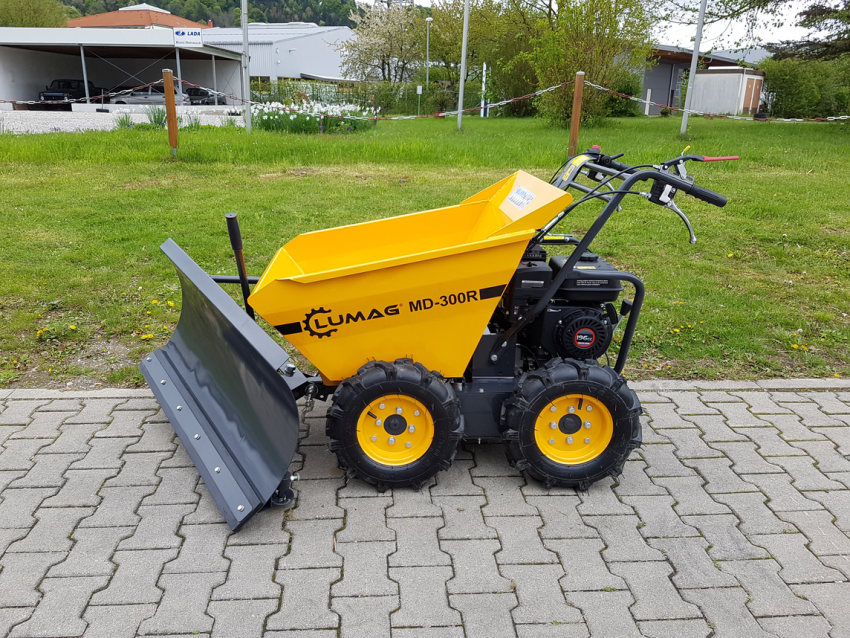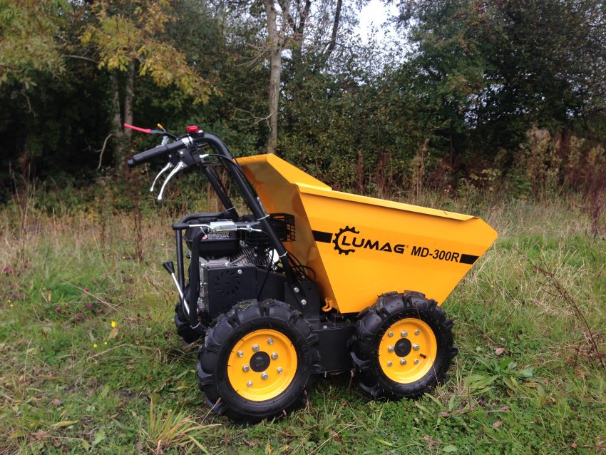Lumag MD300R 300kg Petrol Power Barrow with Manual Tip The Lumag MD300R is a handy and powerful power barrow. With 4wd and skid steering you can go nearly anywhere. Manual with 3 forward and one reverse gear. The chain driven 4 wheel drive offers considerable advantage over friction driven designs used on similar machines.