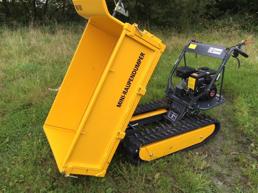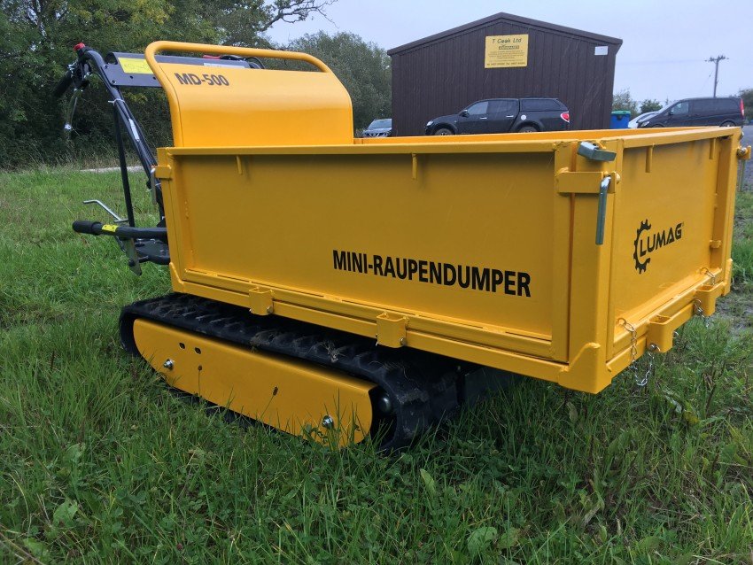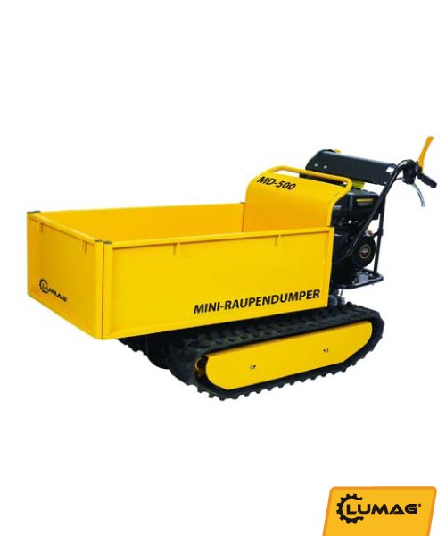 Lumag MD500 500kg Petrol Mini Dumper The Lumag MD500 mini dumper is a handy little dumper that takes the back ache out of a huge variety of material handling tasks. Whether its moving paving stones to a patio at the end of a garden, stone walling rocks up a steep path or just logs for the fire the removable drop sided skip can do it all. Tipping is assisted by a pneumatic ram.
