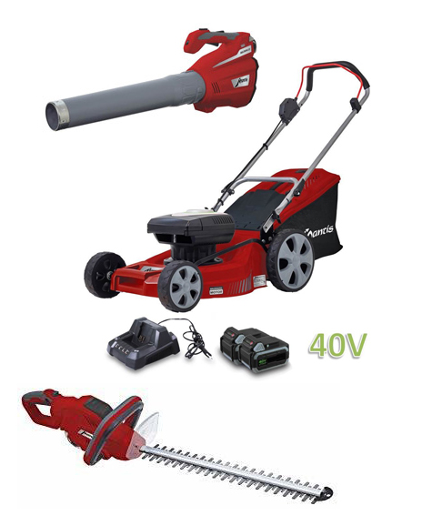 Works with 2 replaceable batteries BAT40-25 which can be also used with other Mantis tools of the same voltage : blower and hedgetrimmer