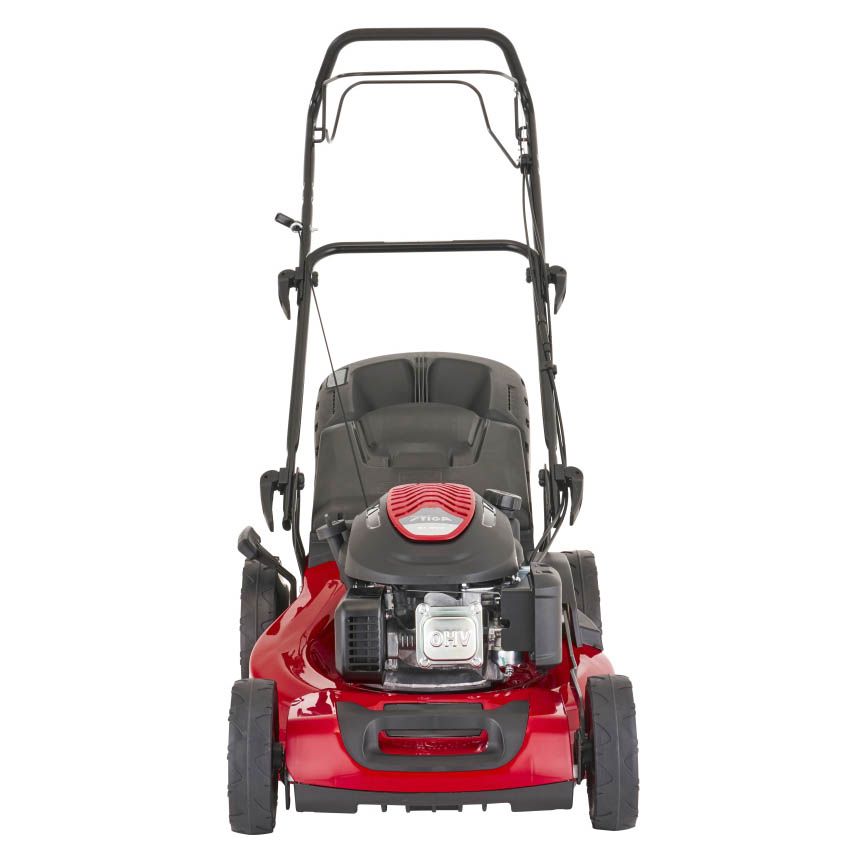 The powerful STIGA ST200 196cc petrol engine, impressive 53cm cutting width and large rear wheels will tackle large undulating lawns with ease. The robust steel chassis in Mountfield Red ensures longevity. The blade can be easily adjusted using a centralised lever with a choice of five different cutting heights.