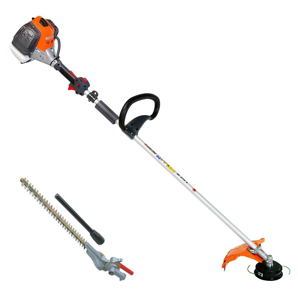 Oleo-Mac BC 270 S Petrol Brushcutter Trimmer The Oleo-Mac BC 270 S grass trimmer was developed for the commercial and heavy domestic user in mind. The Oleo-Mac BC 270 S is powerful enough to make tough jobs easy, while being lightweight. This kit also features EH 50 hedge trimmer attachment and is designed for intensive home use. Designed for maximum versatility, this tool quickly converts from a brush cutter into a long-reach hedge trimmer. The 12-position adjustable attachment provides 270° rotation, making overhead and hard-to-reach hedge trimming effortless and comfortable.