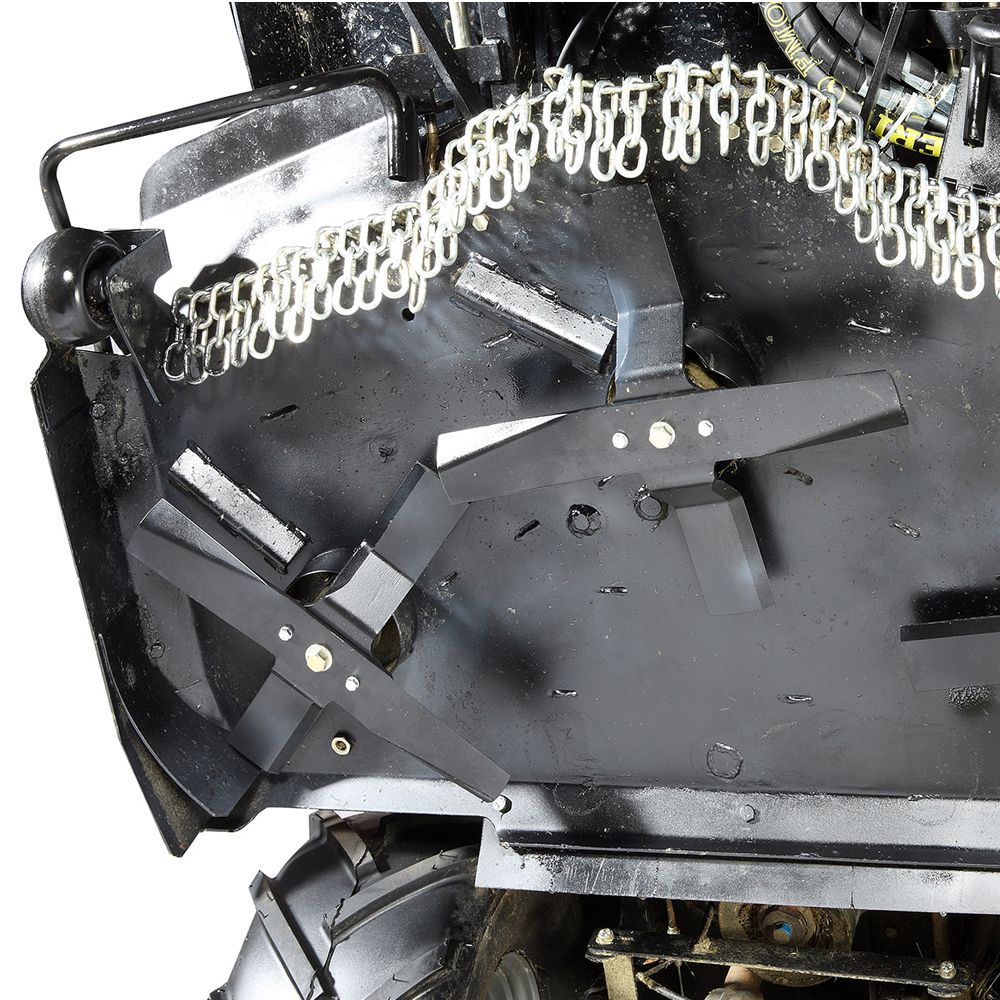 A rotary blade design with electromagnetic blade engagement offers cutting heights ranging from 40mm up to an impressive 120mm giving it plenty of scope for mowing meadows to more formal lawns.