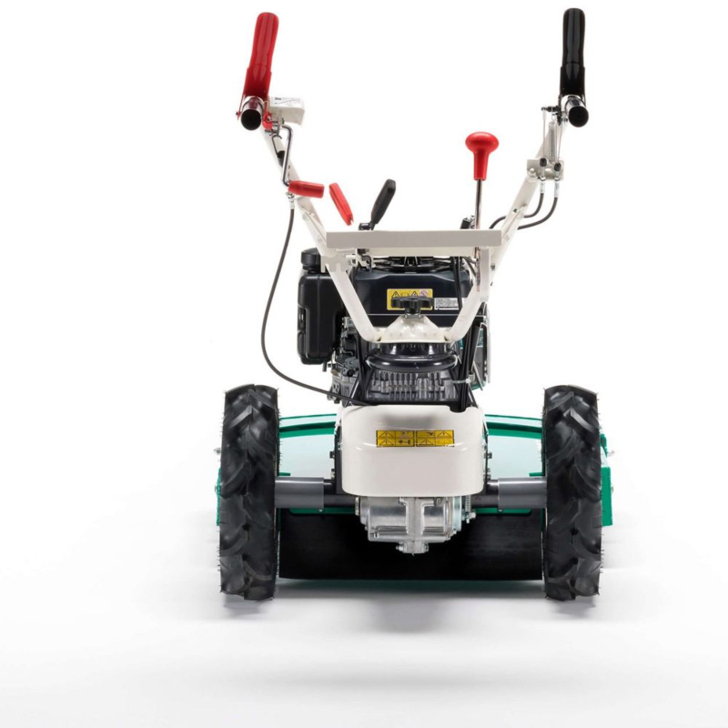 Its equipped with a four-speed gearbox (three forward; one reverse) that enhances manoeuvrability and provides a suitable forward-speed for every eventuality; and, thanks to its infinitely-variable cutting-height adjustment, it can be adapted to suit a wide variety of conditions.nnAlso featured is a pivoting front-wheel for low-effort turning; and parking-brake that keeps the machine firmly in position when its not in use.nnThe crankshaft on this model is backed by an extended 10-year warranty.