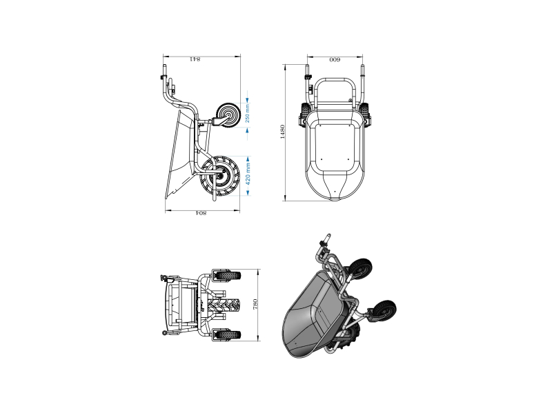 Specification Sherpa Power Barrow - Battery Powered Tipping Wheelbarrow: