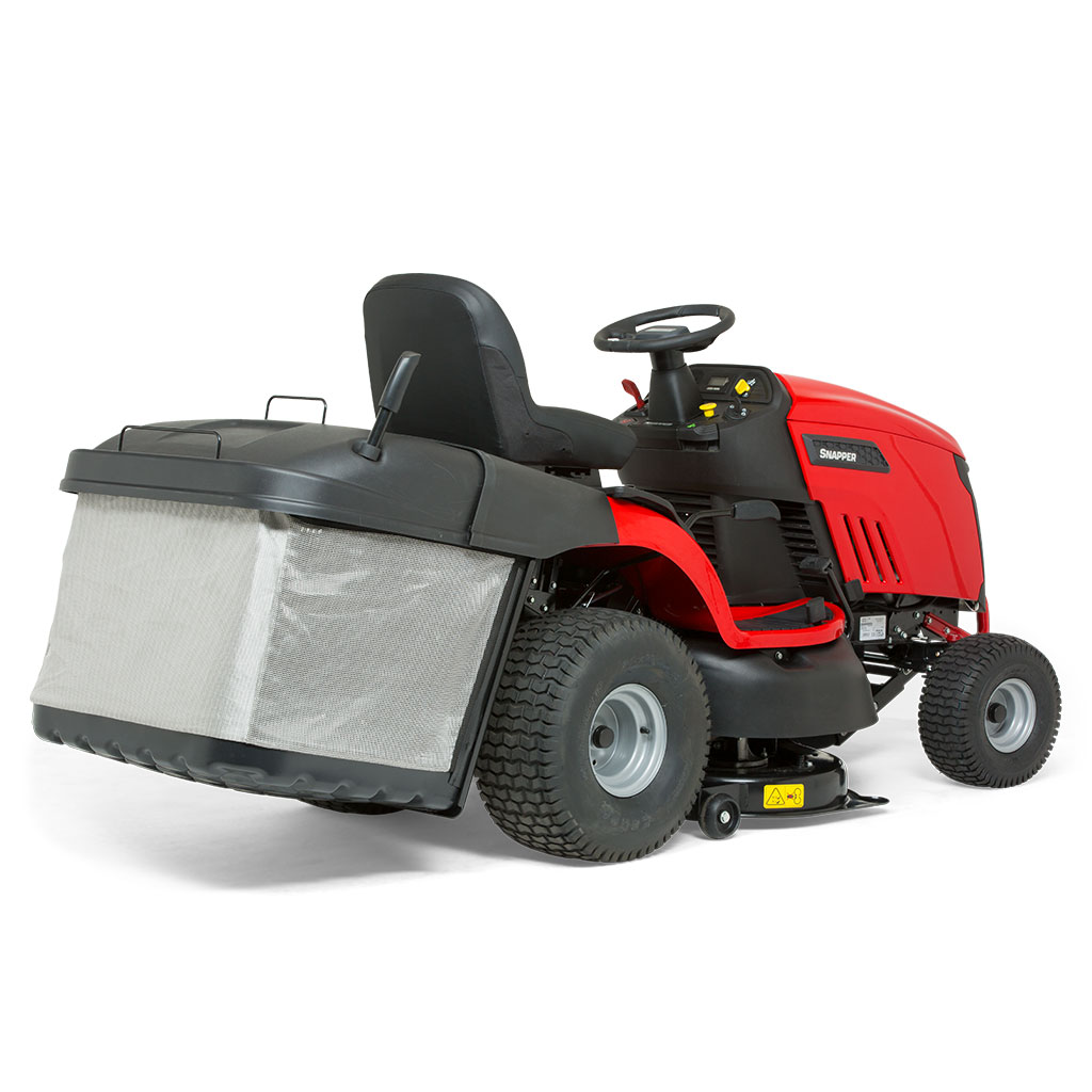 The Snapper RPX210 Rear Discharge Ride on Mower The Snapper RPX 210 rear collect lawn tractor has a 38"/96cm twin-bladed pressed steel cutting deck and a large 350-litre collector, which features a large, comfortable lever enabling the user to empty the grass without leaving the seat.