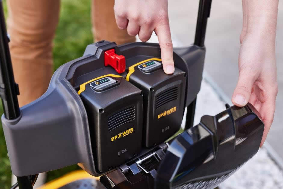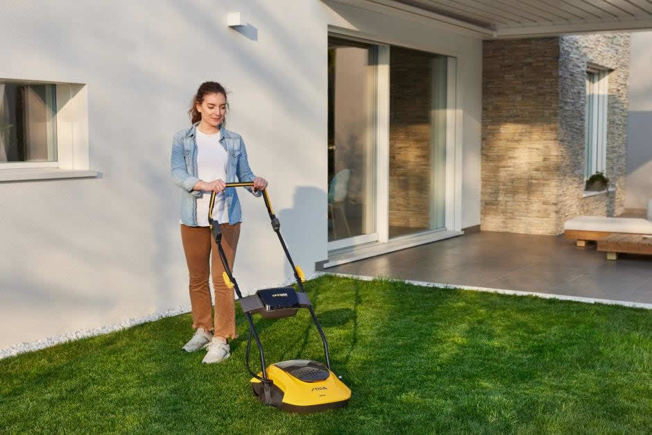 Power comes from two STIGA ePower 20V batteries, held in the battery compartment on the lower handlebar for easy access and improved weight balance. When youre not using the STIGA Aero, you can switch the batteries with your other 1-series STIGA gardening tools so you and the family can get on with other jobs.