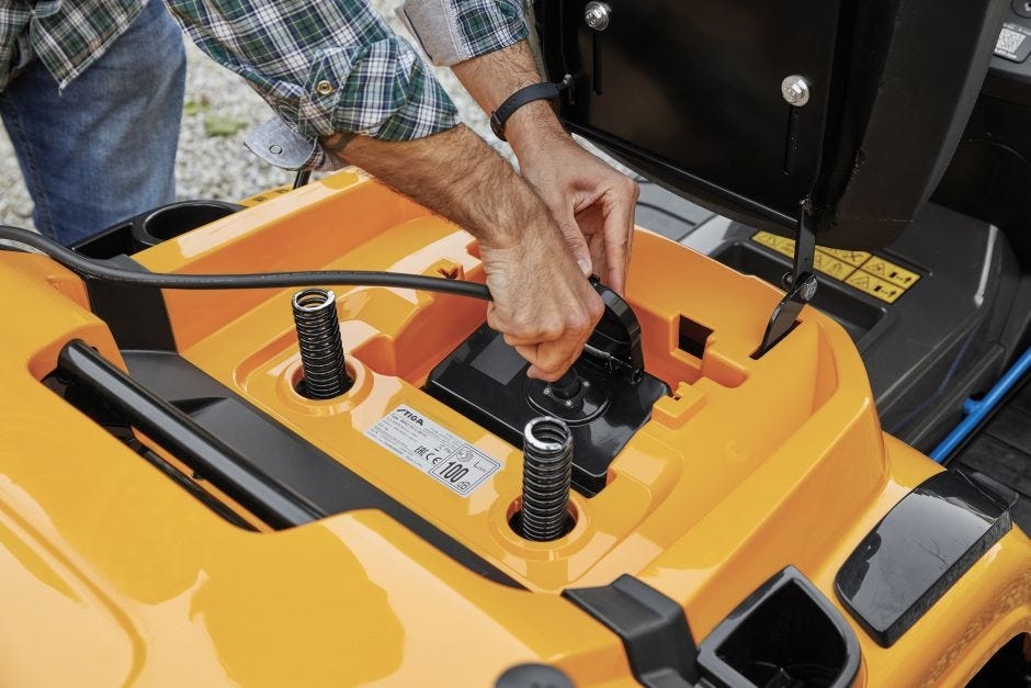 STIGA Smart recharge scheduleWhen plugging your STIGA electric tractor mower in the garage or in your garden shed, you might prefer a certain timing for recharge, in order to save money on energy supply: open the STIGA.GO App on your smartphone and choose the Smart recharge schedule function so you can easily schedule a time slot for your tractor to recharge. It will only recharge in the given timeframe.