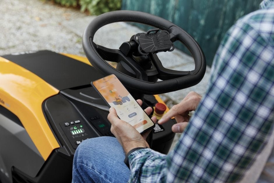 STIGA.GO app with virtual dashboardUse your smartphone as a dashboard while driving, thanks to the STIGA.GO App! By installing the phone on the steering wheel throught the holder, you can always see real-time information about the working session: speed, battery charge left, but also a feedback from the tractor mower on cutting efficiency, so you can adjust either speed or cutting height and achieve the best cutting results.