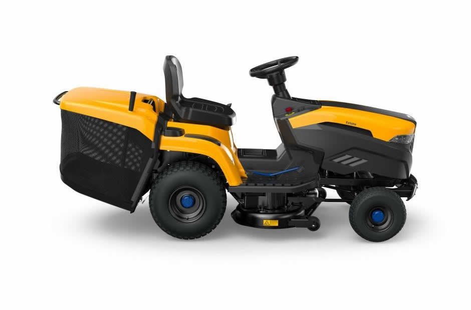Stiga Estate 584e Lawn Tractor Packed with a muscular 48V 40Ah battery pack, the Estate 584e unleashes enough power to tackle lawns up to 4000sqm in around 60 minutes on just one charge. Its battery power also means a quieter ride, low vibrations and zero emissions. A powerful 1.2kW transaxle motor lets you reach a top speed of 9,5km/h while two cutting blade motors totalling 3kW give you a crisp cut with minimal maintenance.