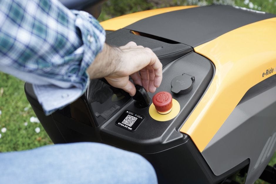 STIGA.GO app with virtual dashboardUse your smartphone as a dashboard while driving, thanks to the STIGA.GO App! By installing the phone on the steering wheel throught the holder, you can always see real-time information about the working session: speed, battery charge left, but also a feedback from the tractor mower on cutting efficiency, so you can adjust either speed or cutting height and achieve the best cutting results.