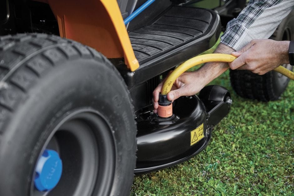 Easy cleaningInnovative washing link feature - for the first time on an electric tractor - enables you to easily clean the cutting deck with a water hose. IP 65 protected.