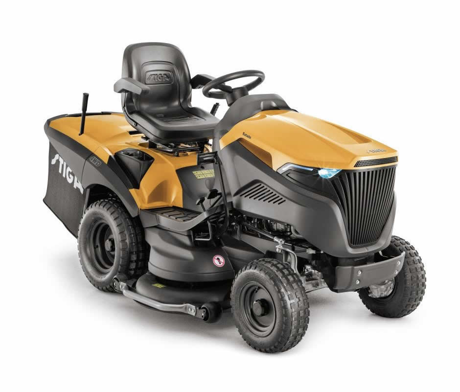 Stiga Estate 9122 WX Lawn Tractor The STIGA Estate 9122 WX is a cutting-edge lawn tractor with a four-wheel-drive transmission and a substantial 122cm cutter-deck that combine to make it ideal for large areas containing inclines, rough grass and other challenging terrain.