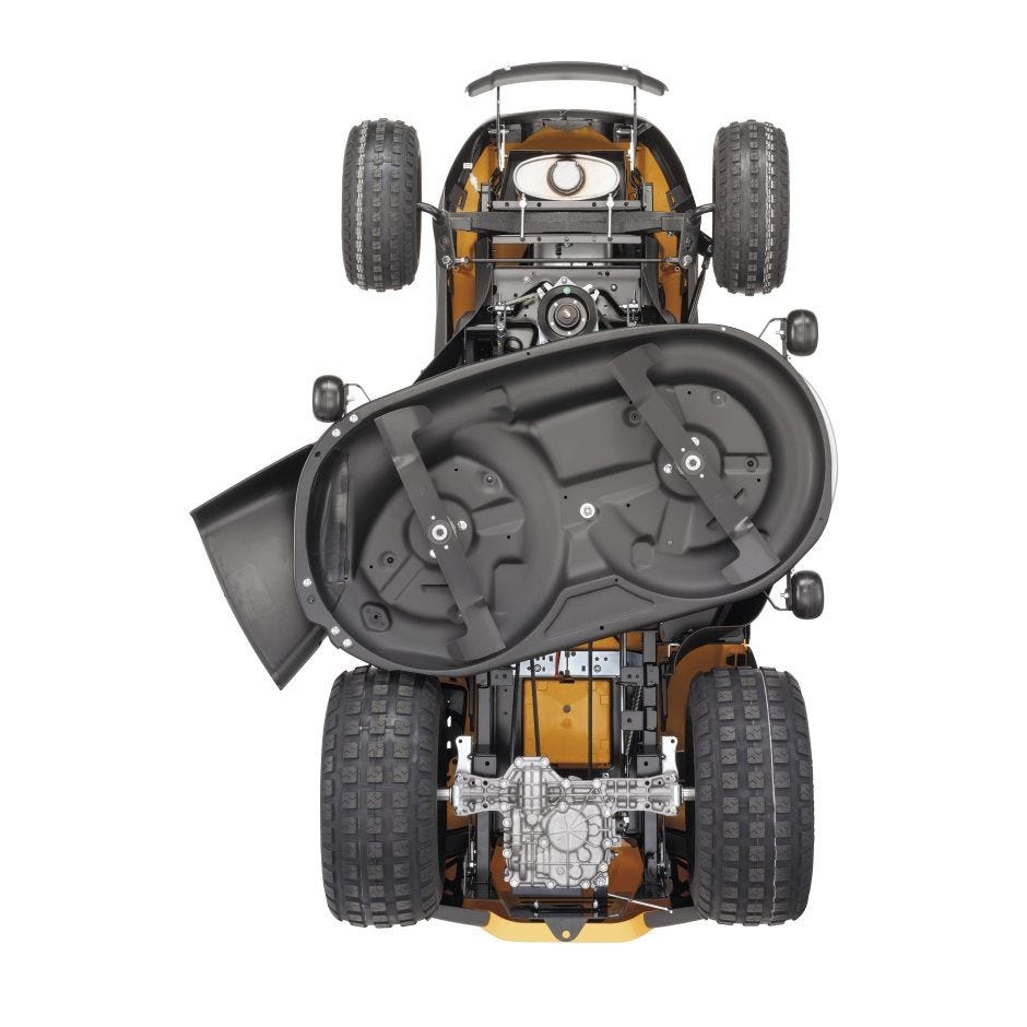 An infinite-increment hydrostatic drive - adjusted via a foot pedal - optimizes manoeuvrability and makes it easy to work safely around obstacles; while a washing link facilitates the hassle-free removal of corrosive, performance-limiting debris from the underside of the 108cm twin-bladed reinforced cutter-deck.