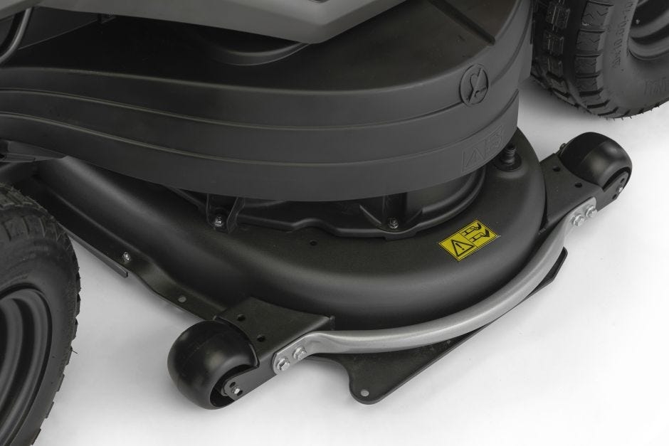 121 cm reinforced cutting deck with 6 anti-scalp wheels