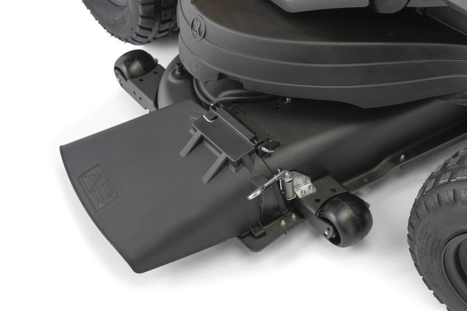 Other stand-out features include deck-mounted gauge wheels that prevent scalping when turning on inclines; a washing link for straightforward under-deck cleaning; and a cast-iron front axle that confers rugged durability.