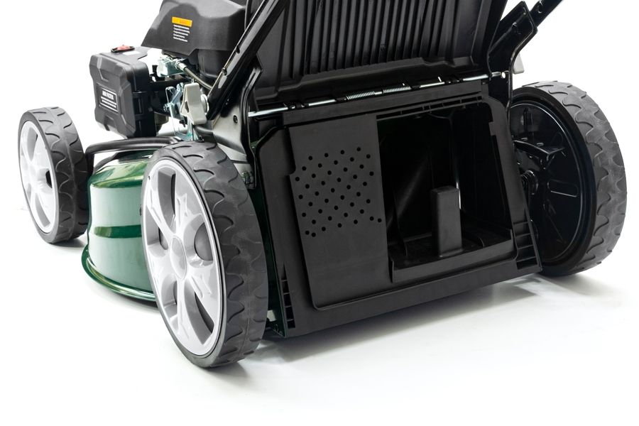 Webb Classic R510SP Petrol Lawnmower 51cm Cut 4 in 1 Self Propelled The new Webb R510SP is a powerful premium 4 in 1 (Collect, Mulch & Rear & Side Discharge) self drive petrol lawn mower with high wheels for increased manoeuvrability. Product features a powerful Webb 173cc DVO 4 Stroke easy start overhead valve engine. The excellent value machine has a single lever height adjustment, large capacity grass box, fold down handles as standard features.This superb model is ideal for the larger garden with varying types of cutting conditions.