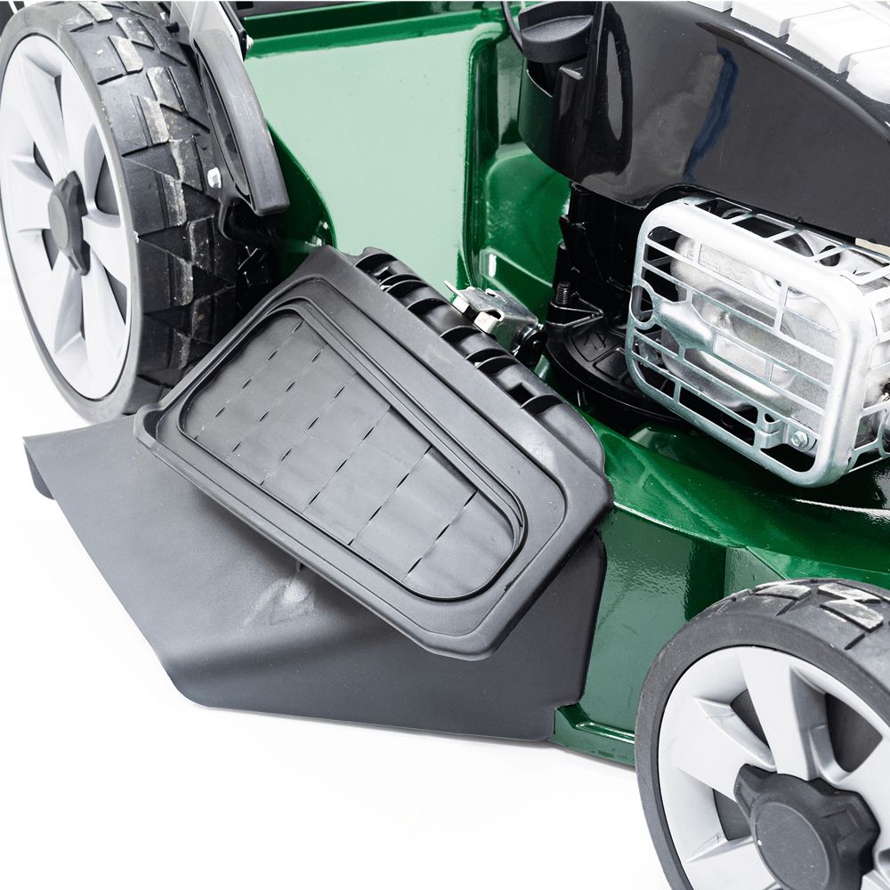 The Webb R21ALSP 4 in 1 Petrol Lawnmower offers high quality craftsmanship to rotary mowers. This premium R21 ALSP 4 in 1 Webb Mower is self propelled by a Briggs & Stratton 675 Exi Ready Start engine and can be set to rear discharge, collect or mulch. A single lever adjusts the height of cut through 8 settings from 25-90mm. The 70 litre Grass Collector can handle larger jobs while the Easi-View feature allows you to check when it needs emptying. The ergonomic SoftGrip handles can easily be folded for compact storage.This model has a non corrosive strong alloy cutter deck, for extra durability.