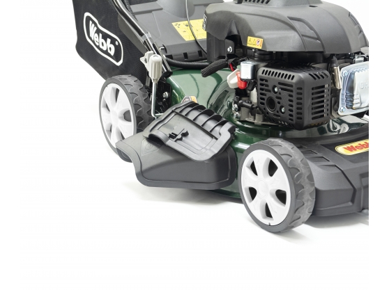 Webb R460ES Lawn Mower 46cm Key Start Rotary This new model from Webb featuring electric start (no having to pull the recoild starter ) With 46 cm of cutting width and large capacity 55 litre collection box you can collect or rear discharge your cuttings to a flexible choice of seven heights with a single lever.Excellent value, the Webb R46PES Key start Petrol Self Propelled. This Webb is a 4 in 1: Rear Discharge, Side Discharge, Collect or Mulch. This new Webb model is powered by a powerful Webb DVO173cc key start 4 stroke engine.