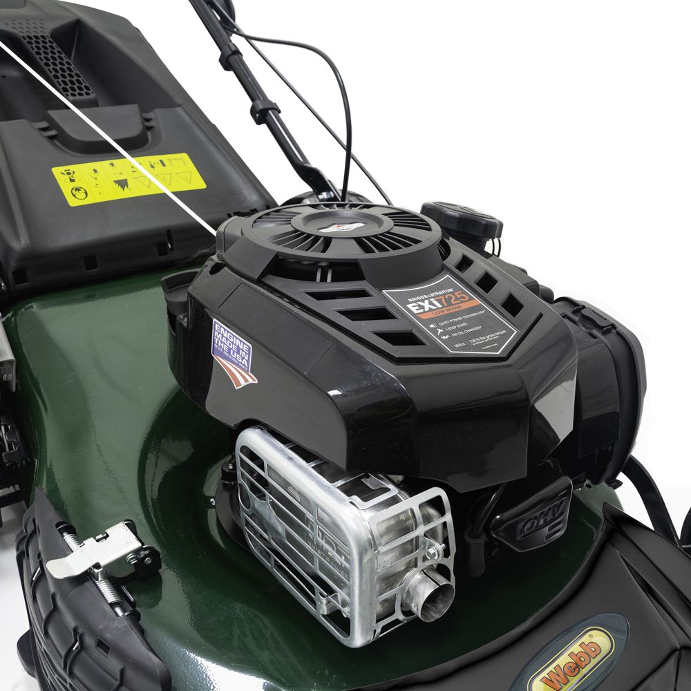 The Webb WER21 HW4 Lawnmower a 53cm (21 inch) self propelled high wheel rotary mower with its easy to start Briggs and Stratton EXI725 series easy start 4-stroke engine is ideal for the larger size lawn and with its 4-in-1 capability can collect, mulch or discharge to the rear and the side. This top quality four wheel rotary mower from Webb is tough, easy to operate and powered by a powerful Briggs and Stratton 4-stroke engine, it has driven high wheels at the rear for quick and easy turnaround or negotiating slopes and obstacles.