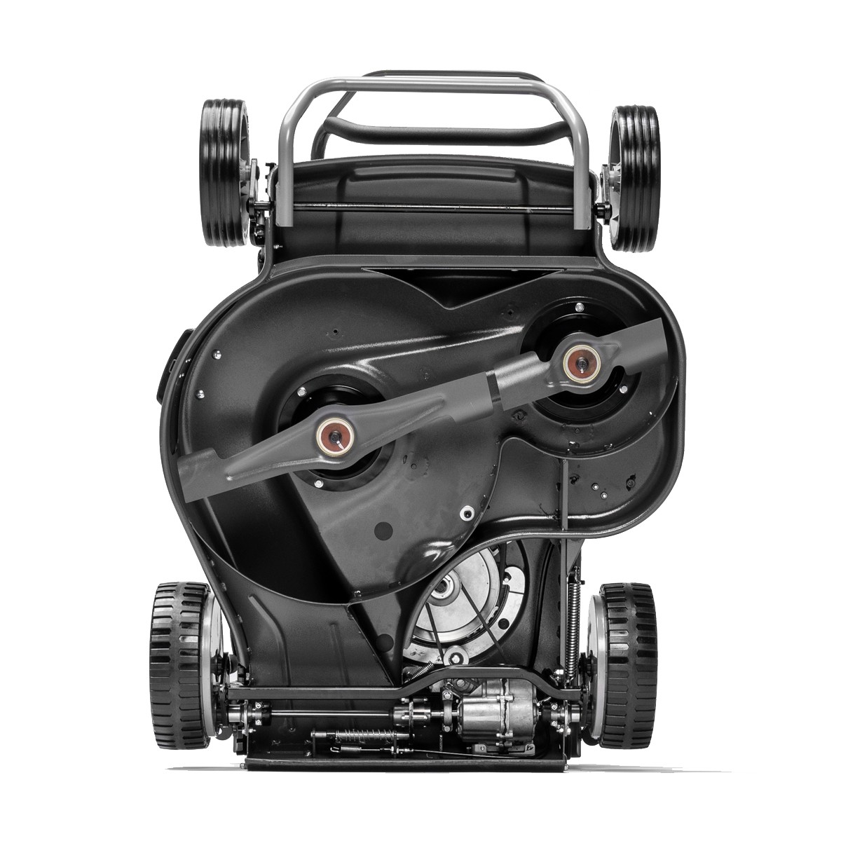 The newest addition to the Virtue range offers an unrivalled 77cm cutting width with twin blade overlap design. Enabling the largest areas to be cut with ease and with an additional 45% more productivity when compared to a 53cm model, the 77 TBO is the flagship of the Virtue family. It is the overlap deck design that allows for a wide area to be cut efficiently and gives huge benefits to the collection, side discharge and mulching performance.