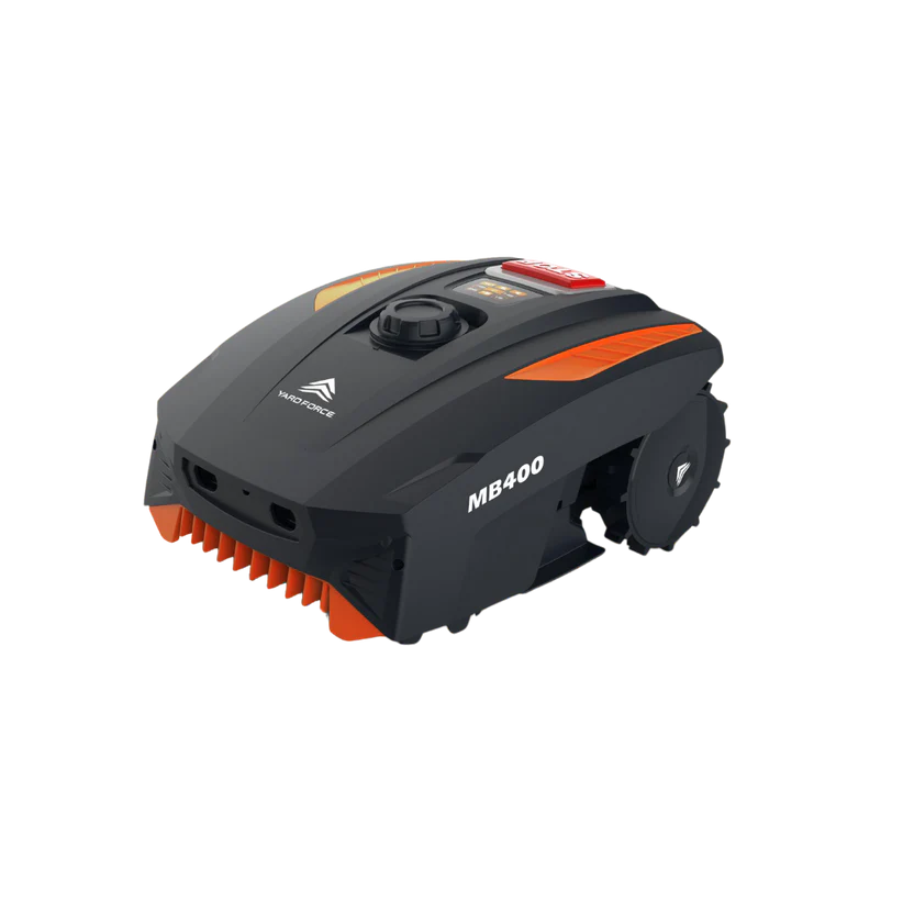 Yard Force MB400 Robotic Lawnmower < 400 m² The Yard Force MB400 Robotic Lawnmower from Yard Force is a compact, intelligent solution for maintaining lawns up to 400m² with minimal effort. Designed specifically for small to medium-sized gardens, this fully automatic robot mower is powered by a durable 20V 2.0Ah lithium-ion battery that delivers efficient, consistent cutting performance while keeping energy consumption low. Its 16cm cutting width and three sharp steel blades ensure a neat, precise finish, while the centrally adjustable cutting height ranging from 2055mm allows you to tailor your lawns appearance throughout the seasons.